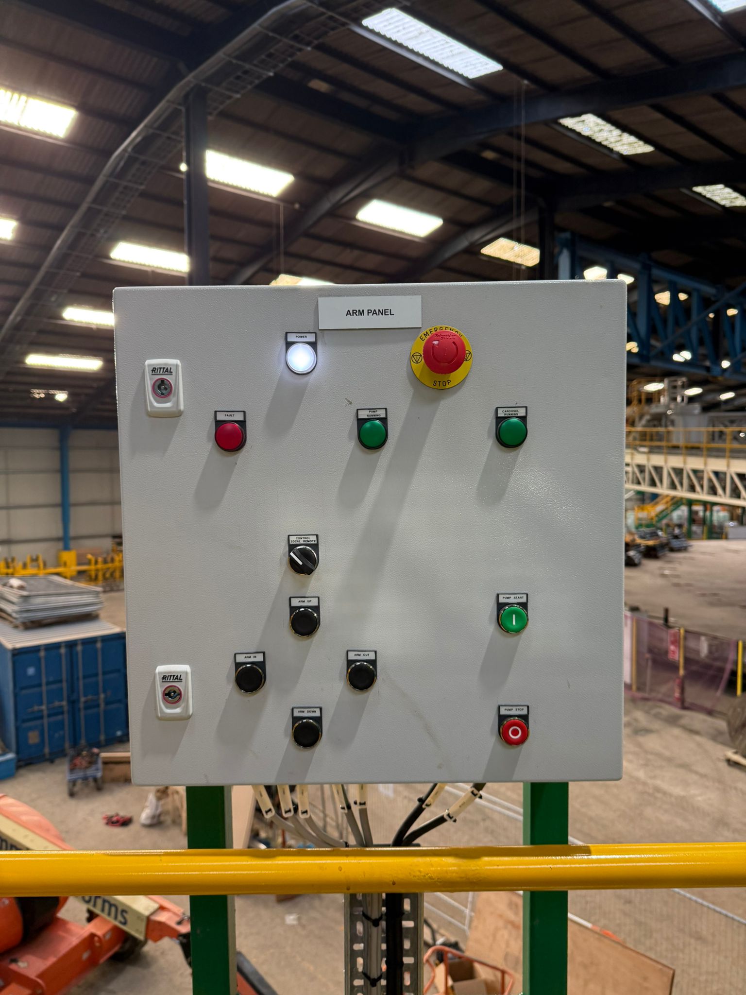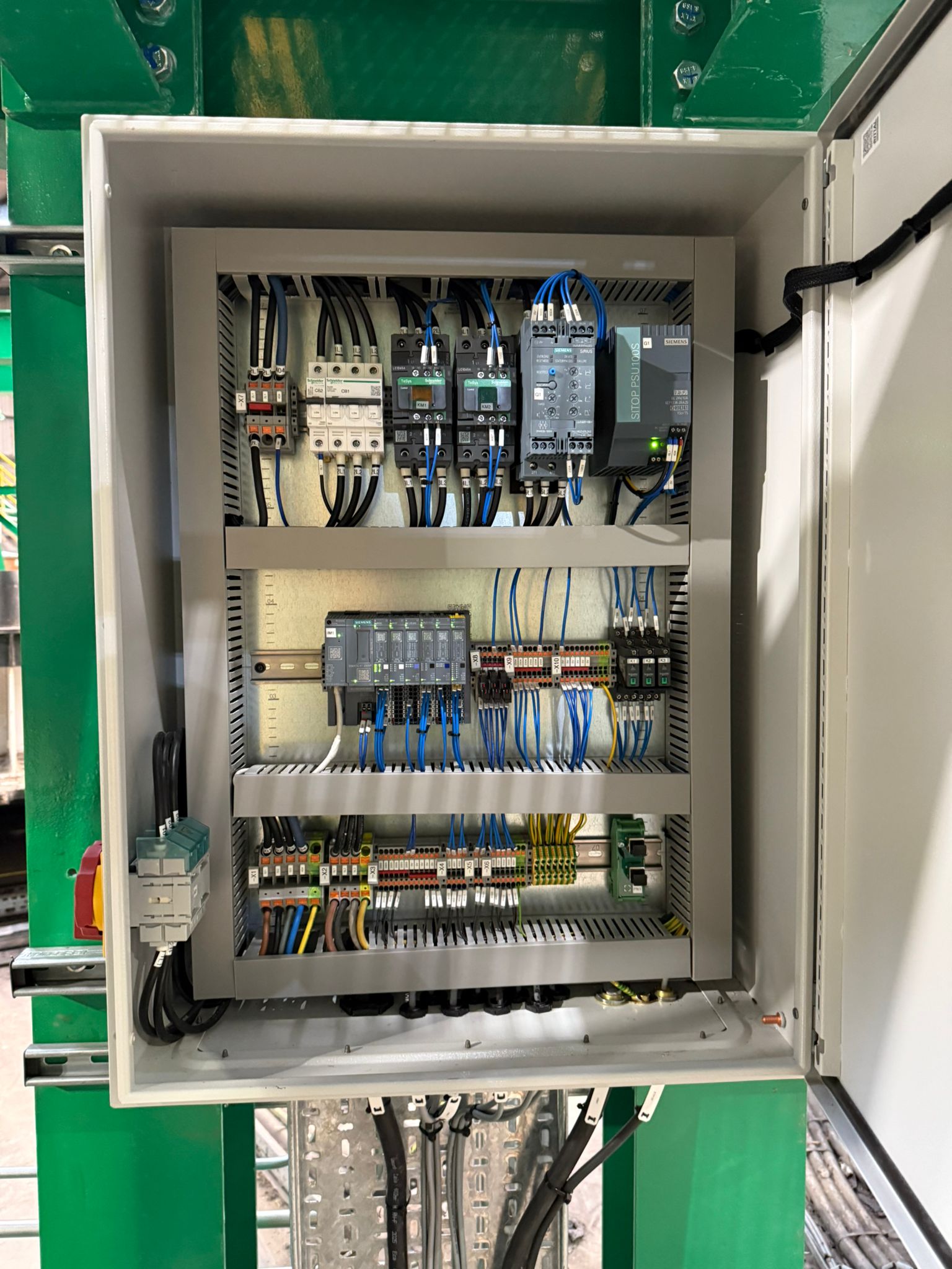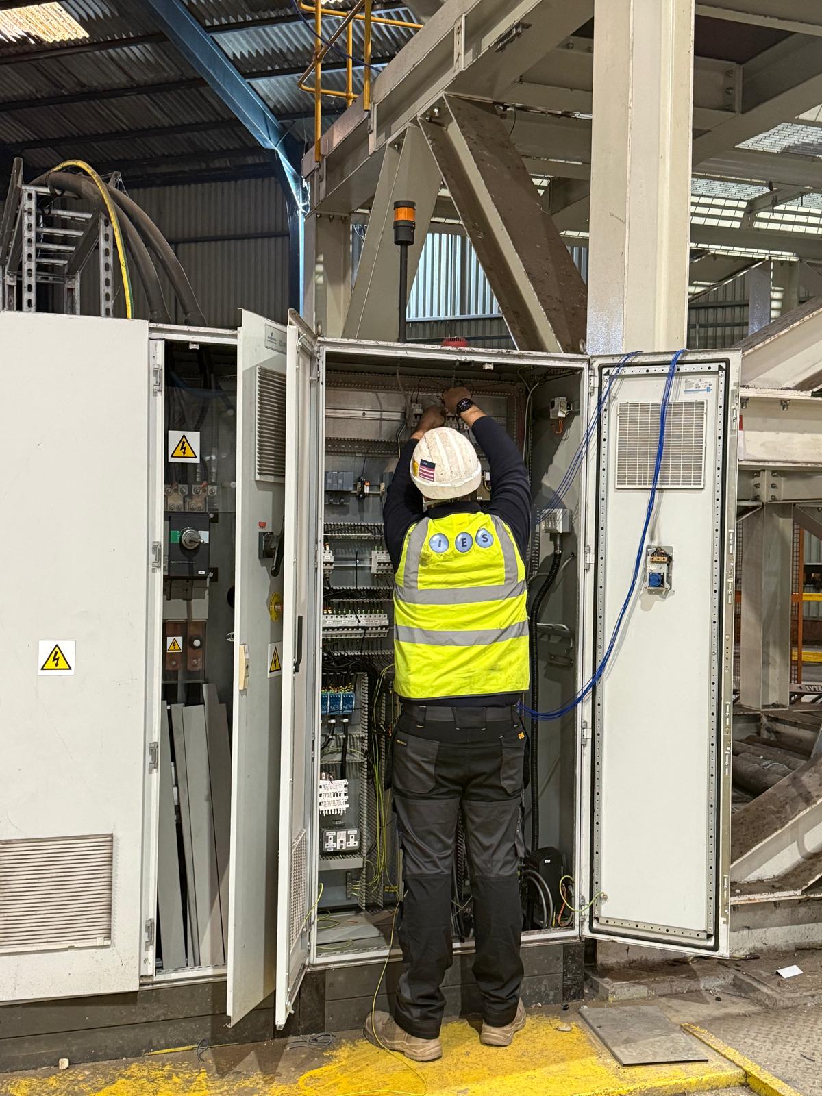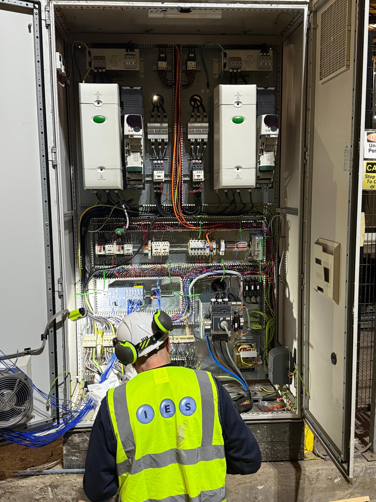 Control panels required for new electrical system. This is the first part of the upgrade and a return visit will be once the heavy mechanical team have removed the existing and replaced with the new machine when we will be installing new containment, cabling and sensors all over the machine which has a footprint of over 40m diameter.